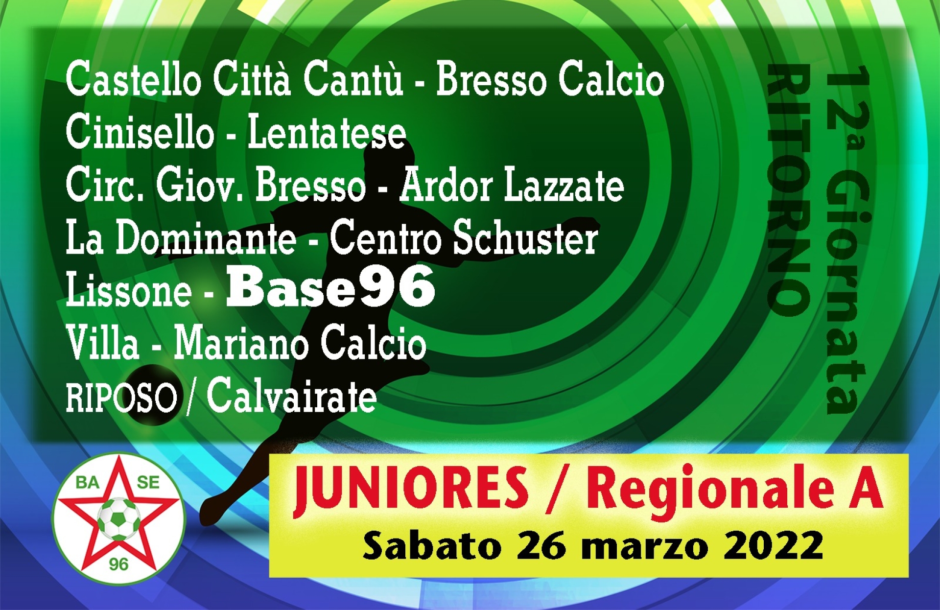Sabato alle 15:00 al Centro Sportivo Comunale di via dei Platani va di scena la gara valevole per la 25^ giornata di campionato tra i nostri JUNIORES REGIONALI e il LISSONE.