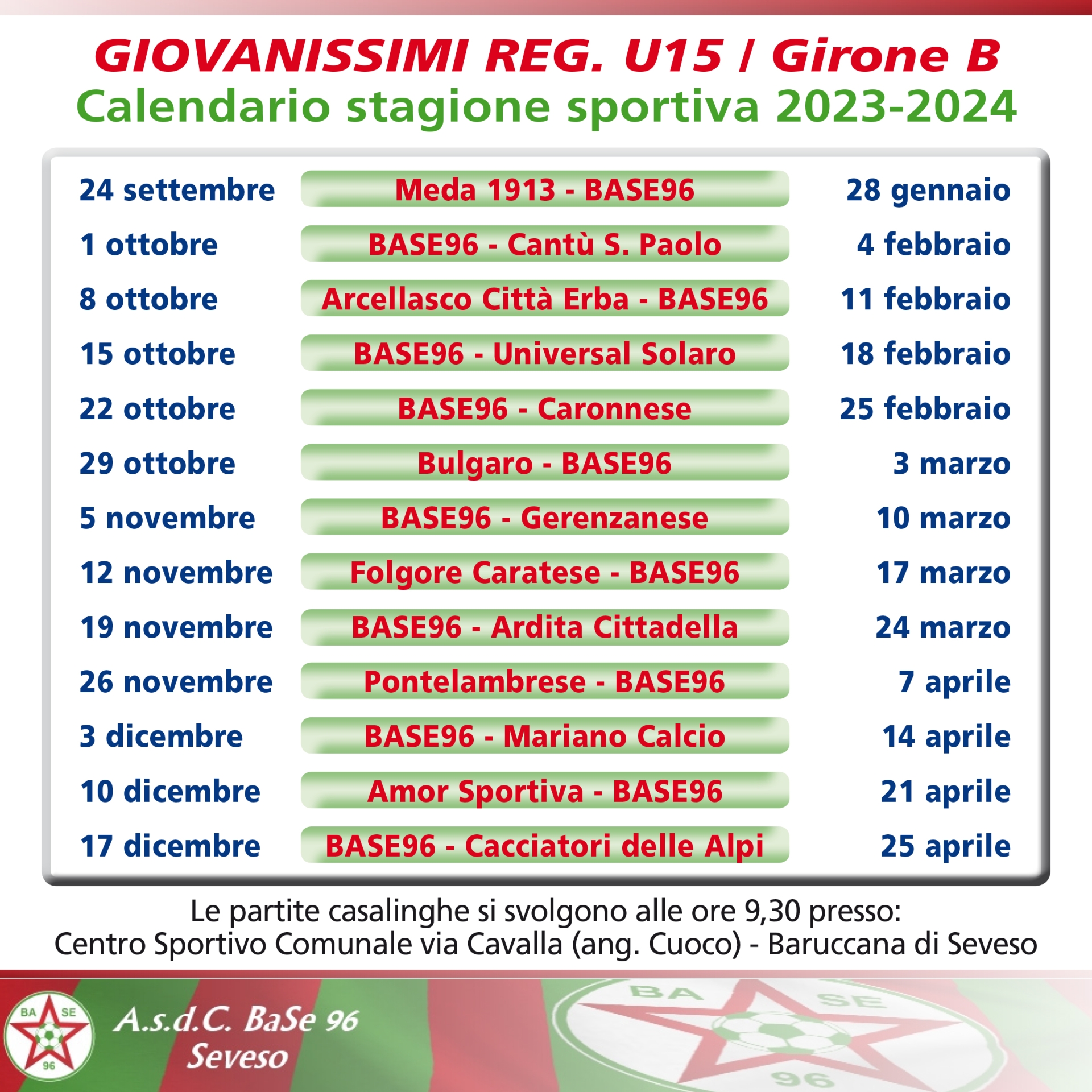 UNDER 15 REGIONALI / stagione sportiva 2023/24 • Calendario con tutte le date delle gare