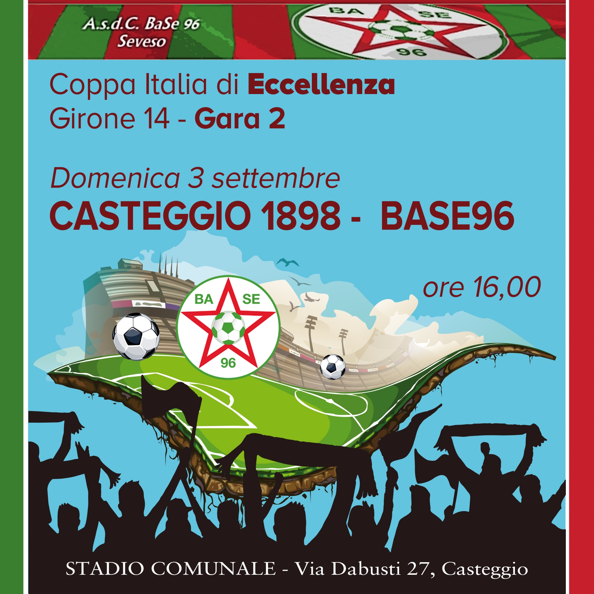 Sfidiamo il Casteggio 1898, domenica 3 settembre inizio gara alle ore 16,00 allo stadio comunale di Via Dabussi.