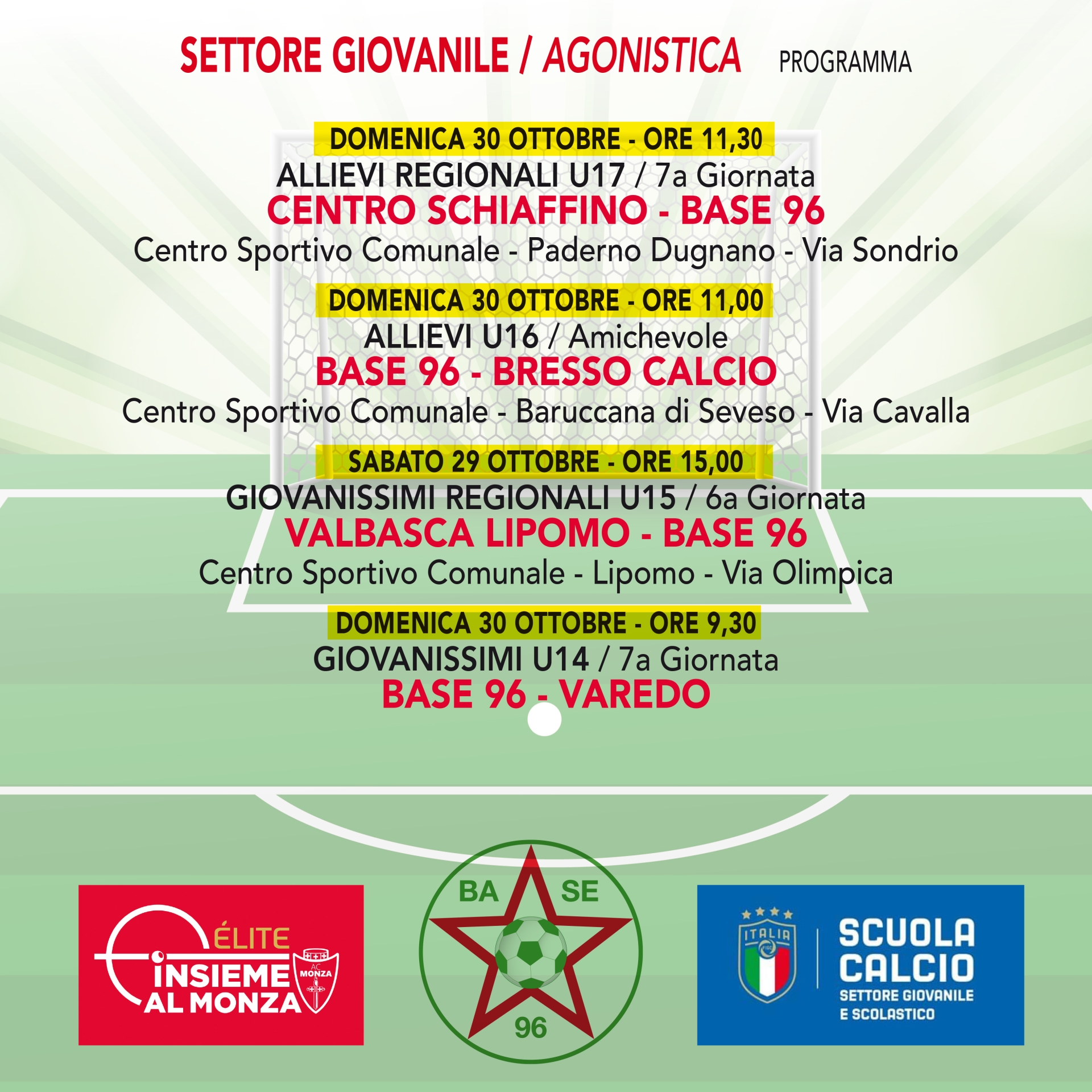 SETTORE GIOVANILE: AGONISTICA • Il programma delle partite di questo week end