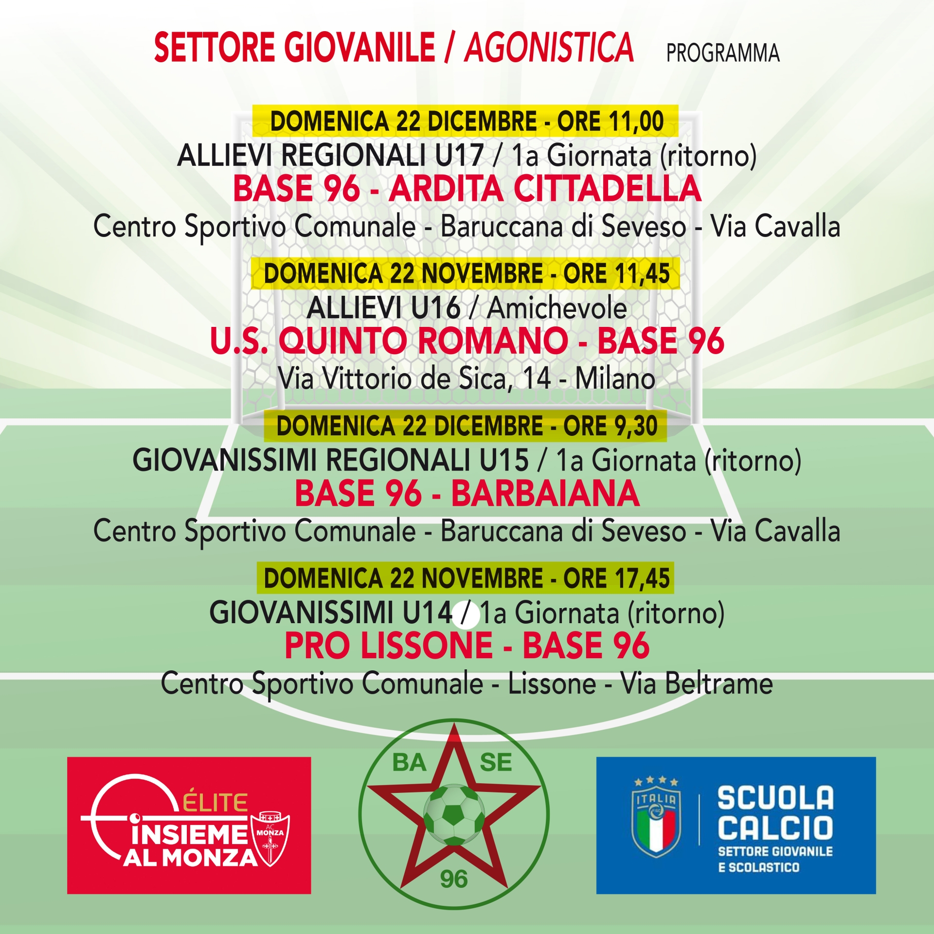 Ricominciamo i campionati per le nostre squadre agonistiche. Solamente per gli ALLIEVI U16 il loro campionato di ritorno inizia settimana prossima.