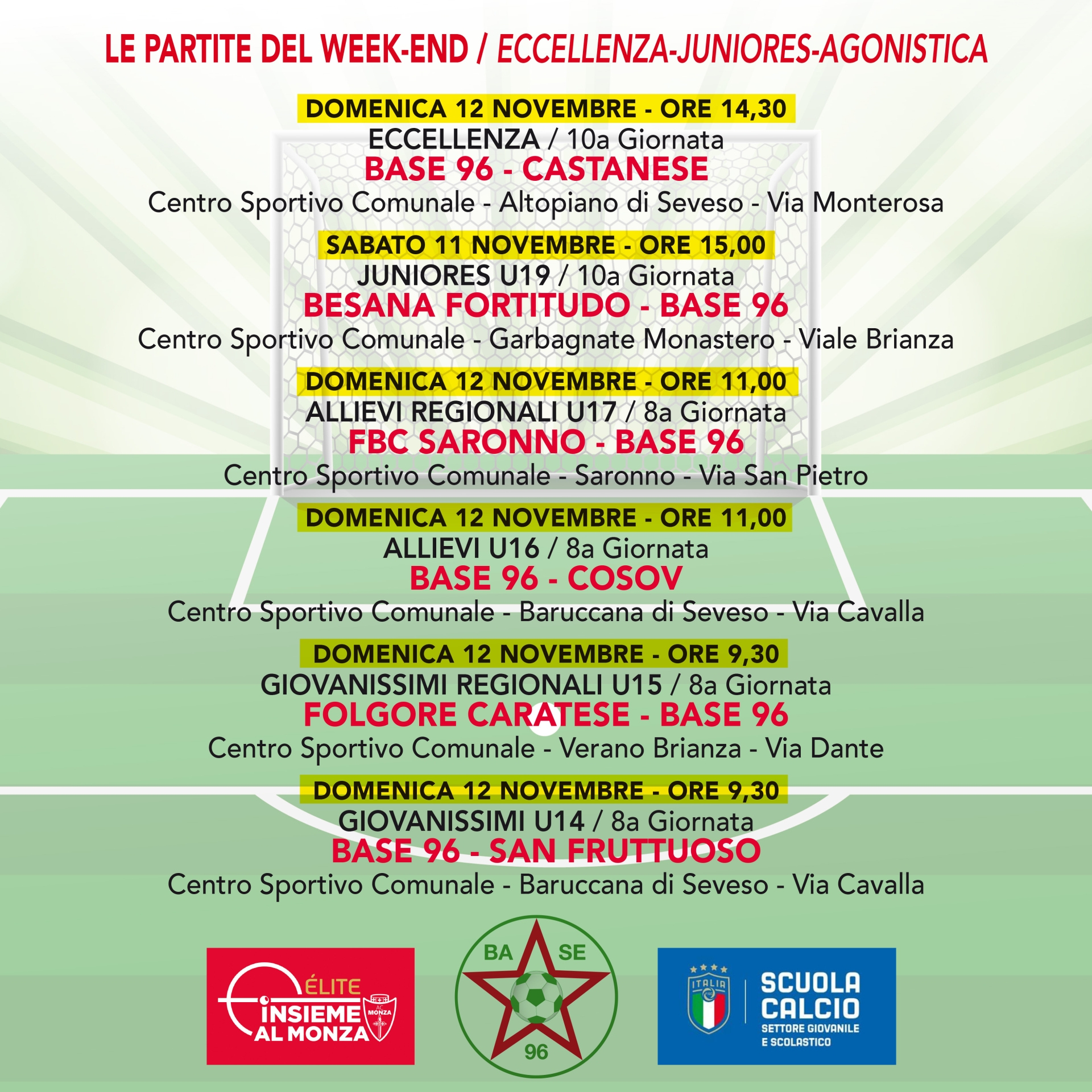 Tutti gli incontri delle nostre squadre • Dall'ECCELLENZA ai GIOVANISSIMI
